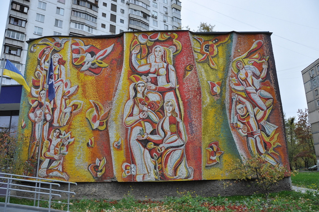 - будівля Інституту біоорганічної хімії та нафтохімії ім. В. П. Кухаря НАН України (Харківська шосе, 50). Мозаїка “Земля і Люди” родини художників-монументалістів Кириченків.