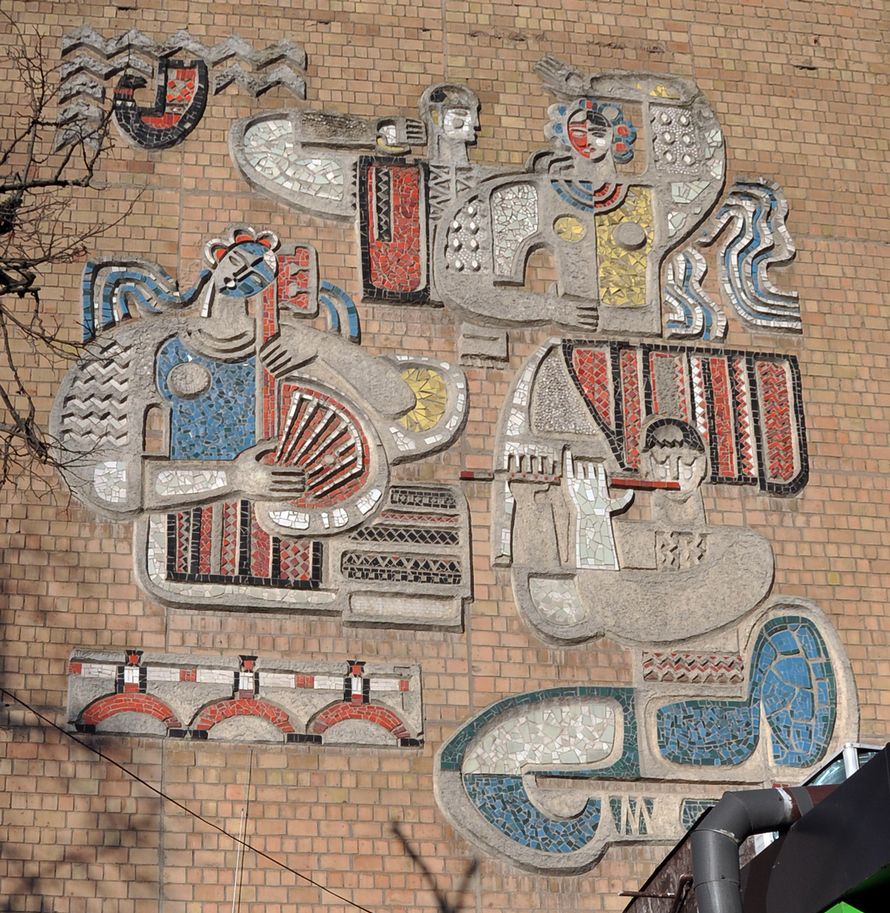 - серія «Людина та природа» з 11 мозаїчних панно (бул. Лесі Українки, 24 та 28) А. Гайдамаки та Л. Мищенко;
